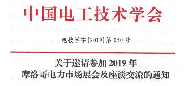 [詳情內(nèi)容]中國電工技術學會:關于邀請參加2019年摩洛哥電力市場展會及座談交流的通知
